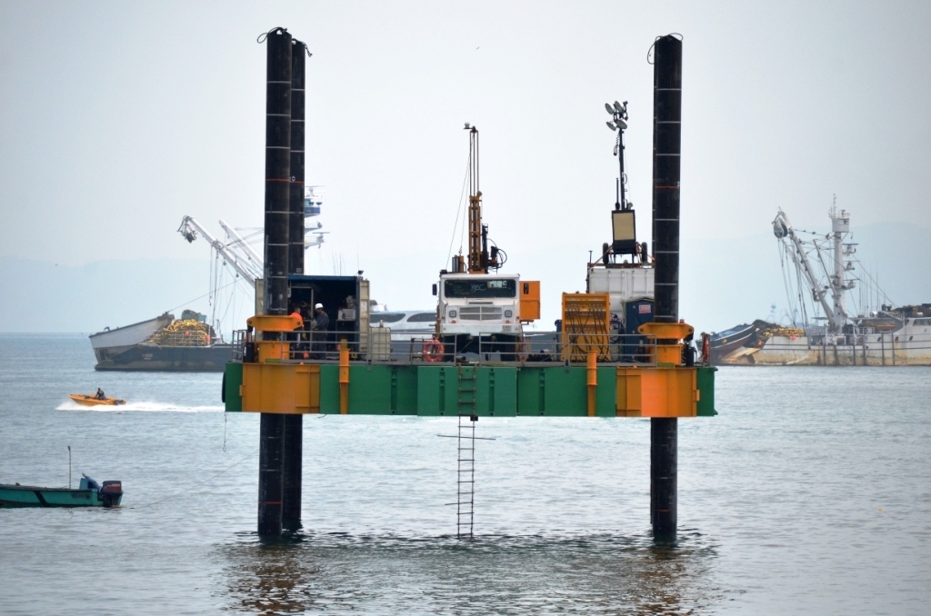 Estos trabajos se basan en la perforación del terreno bajo el mar hasta alcanzar la profundidad definida, registrándose el tipo de suelo que se atraviesa y realizando simultáneamente los ensayos que servirán para caracterizar las propiedades del mismo.