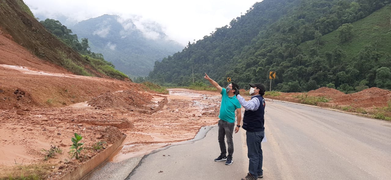 El viceministro de Infraestructura del Transporte, Ricardo Paula y el director distrital del MTOP, Pedro Bazurto verificaron los puntos críticos resultado de la fuerte temporada de lluvias de los años 2019 y 2020 que ocasionaron daños en las vías de la parte alta de El Oro.