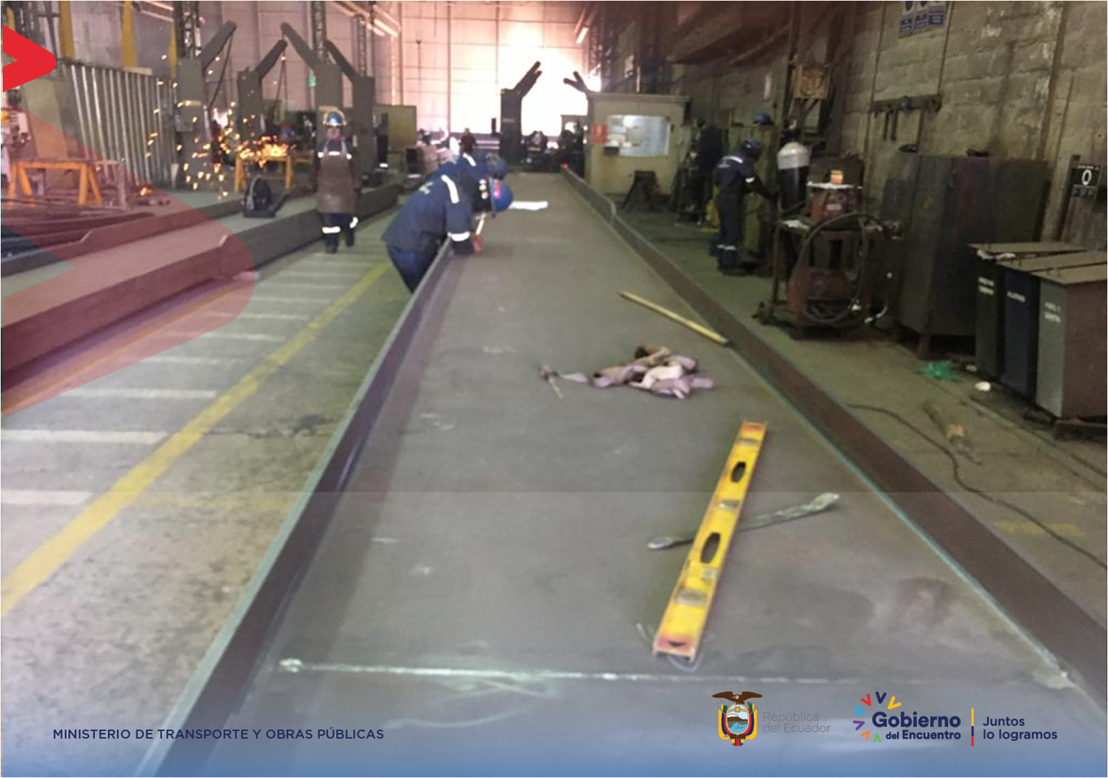 Santiago López, subsecretario de la zona 6 del Ministerio de Transporte y Obras Públicas (MTOP) informó que los trabajos de armado y soldadura de las grandes piezas metálicas se ejecutan en un taller especializado bajo inspección técnica constante, a fin de que se cumplan las especificaciones de los diseños y la normativa para este tipo de estructuras.